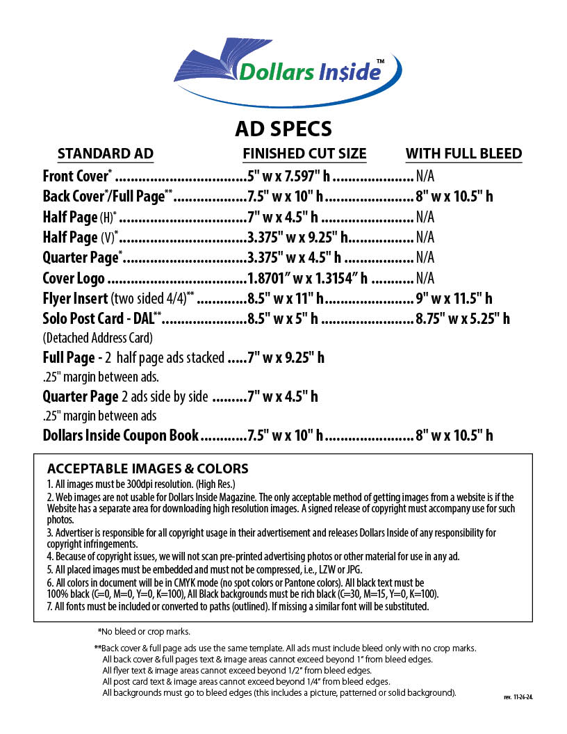 We have years of experience successfully advertising businesses like yours. Our Dollars Inside Coupon book is mailed once a month freely to consumers around your business.
