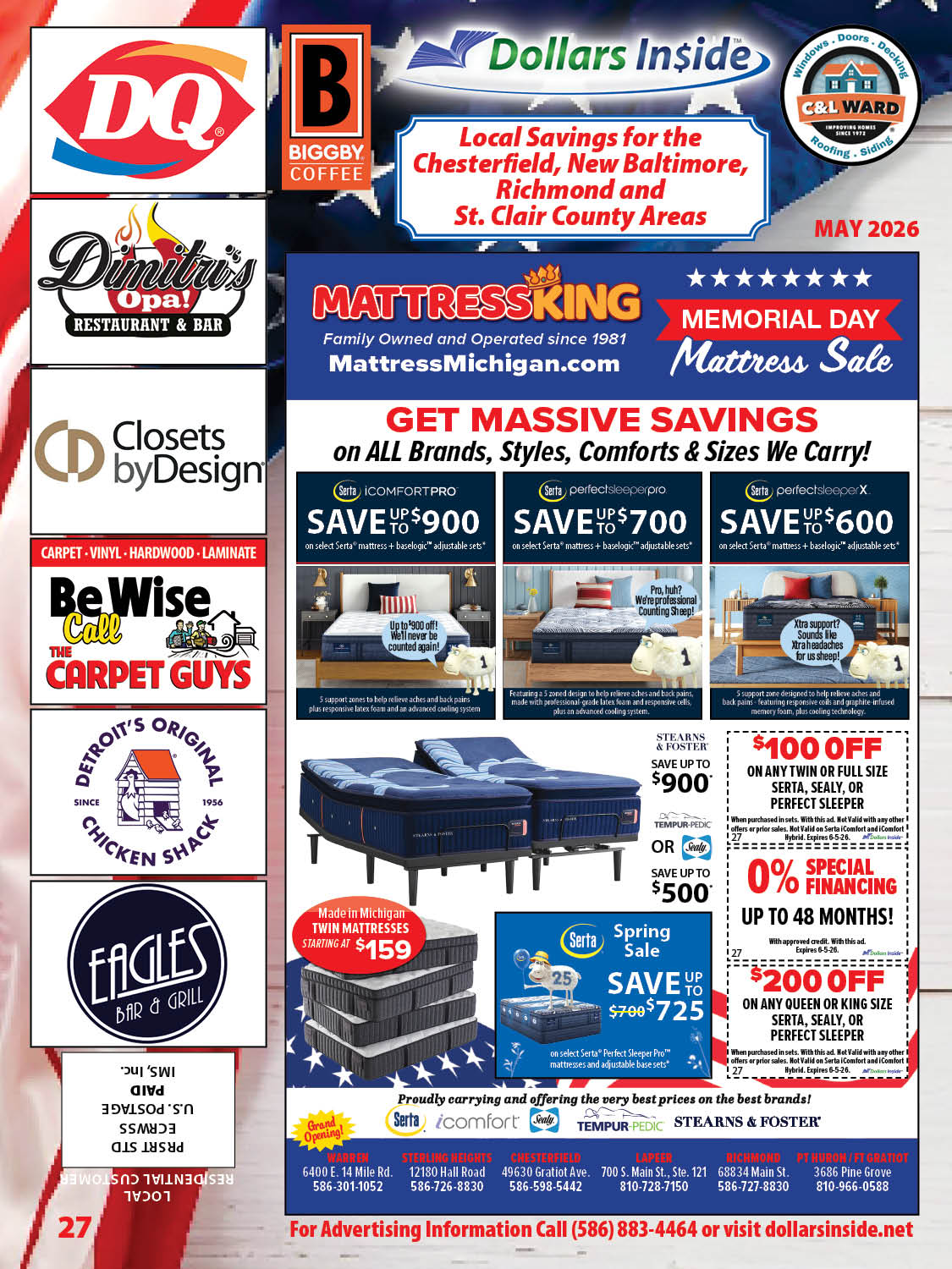 Algonac / Anchorville / CascoChesterfield / East China Twp.Marine City / MarysvilleNew Baltimore / RichmondSt. Clair